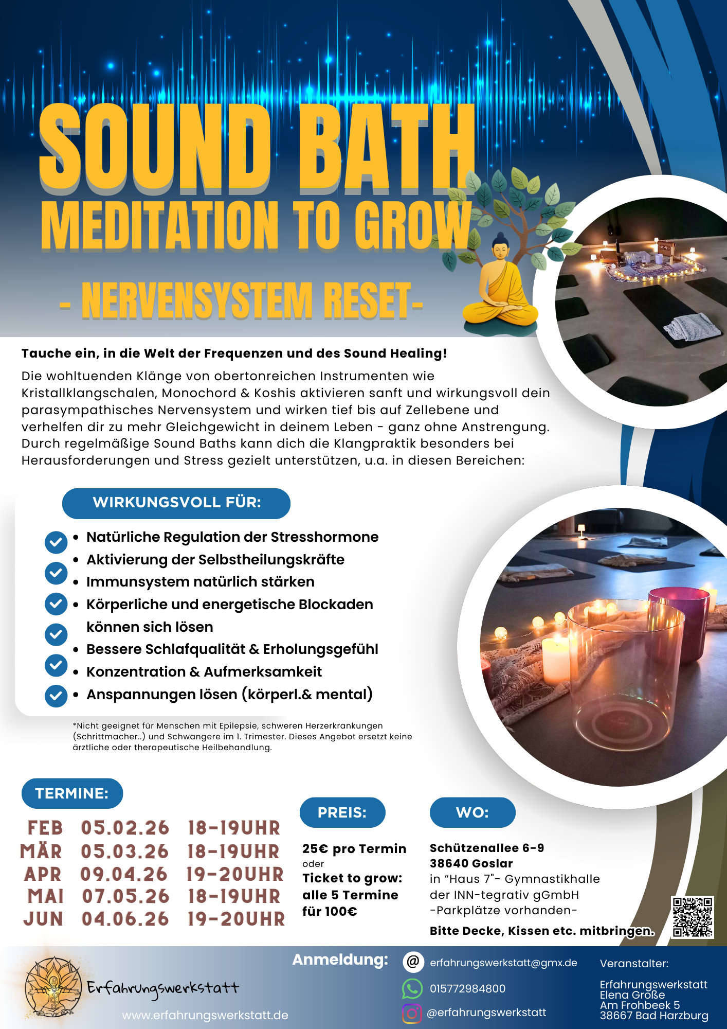 Hier kannst du ab sofort in Goslar einmal im Monat eine Stunde für dich beanspruchen, um wirkungsvoll dein Nervensystem zu regulieren und zur Ruhe zu kommen. Ausgleich finden und den Anker setzen, um Tempo rauszunehmen und das regelmäßig oder wenn du es gebrauchen kannst.