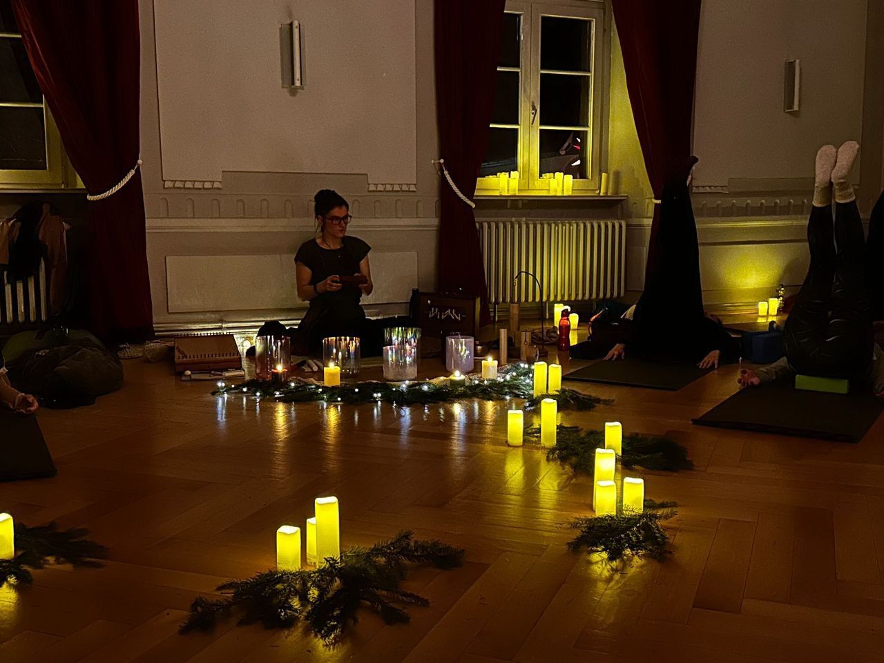 - thematisch ausgewählte und von live Sound begleitete Yoga Sequenzen